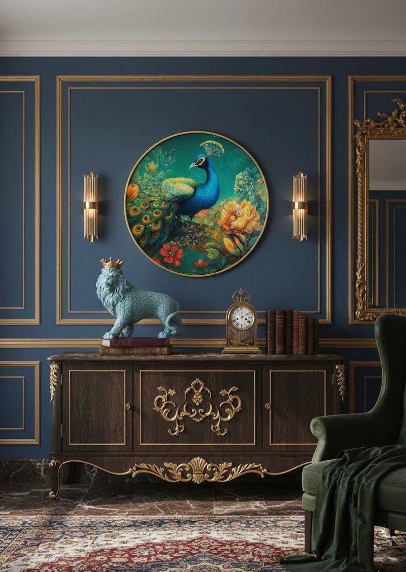 Textured Teal Lion Figurine with Stylized Golden Crown